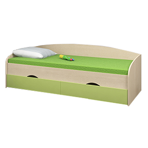 Одна из самых популярных моделей, по форме – это мягкое спальное место, низкий диванчик со спинкой и подлокотниками. Некоторые изготовители укомплектовывают съемными бортиками (детей помладше они уберегут от падения), устанавливают на ножки и подиум.